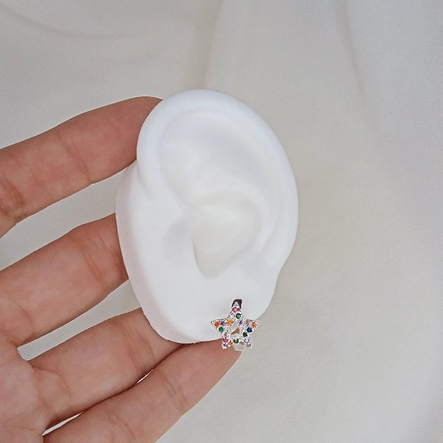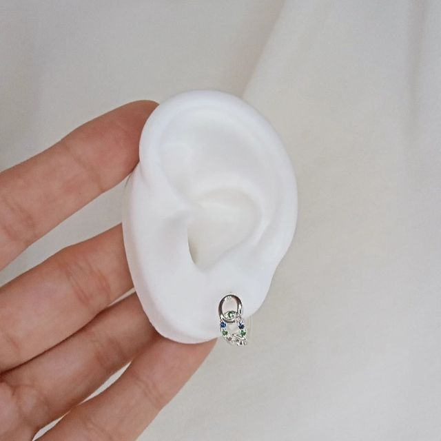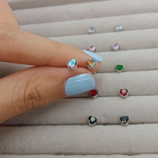 Argollitas de acero blanco con strass de colores. Medida: 1 cm.