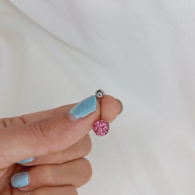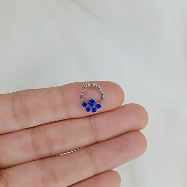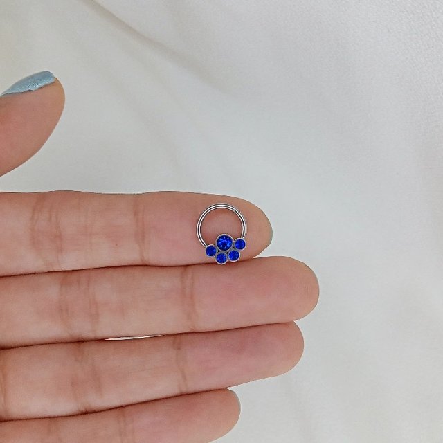 Argollita clicker de acero quirúrgico con strass azul. Medida: 1 cm.