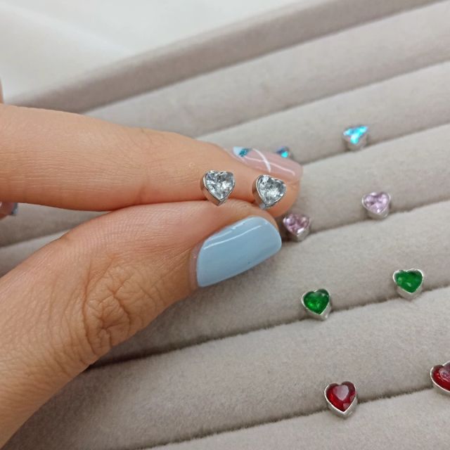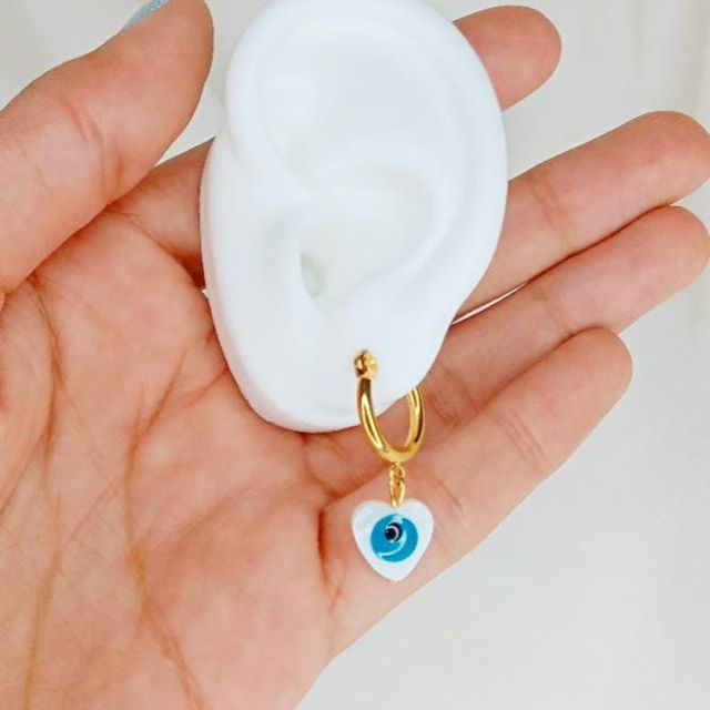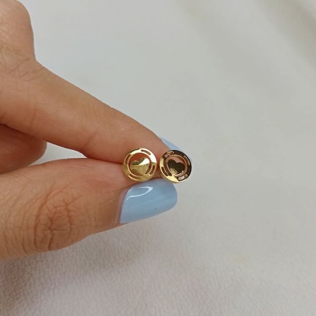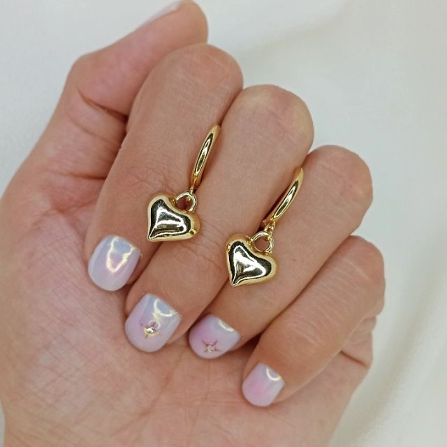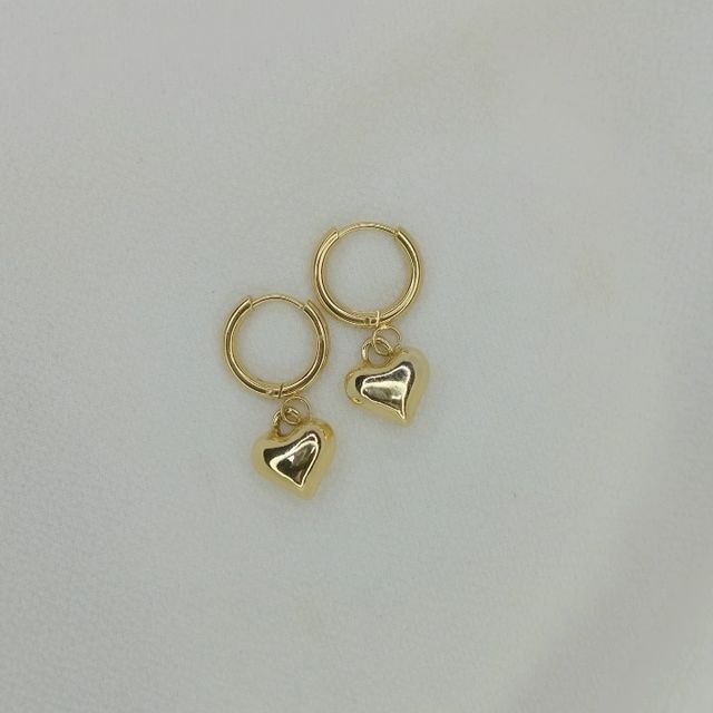 Argollitas de acero dorado con dije corazón. Medida: 1cm.
