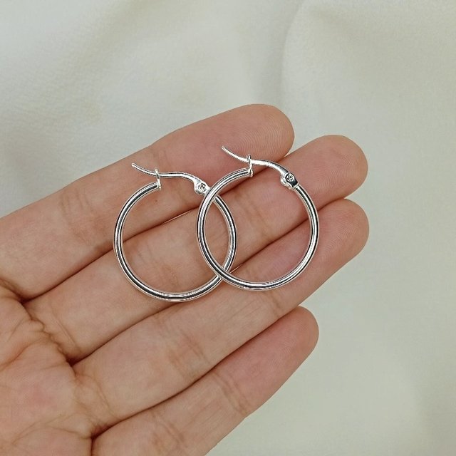 Argollas de acero blanco finas. Medida: 2,5 cm.