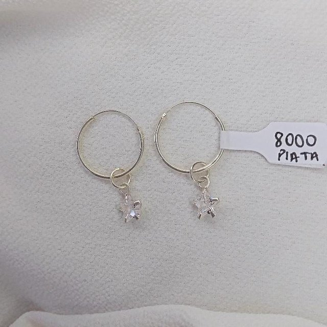 Argollitas de acero quirúrgico con strass. Medida: 1 cm.
