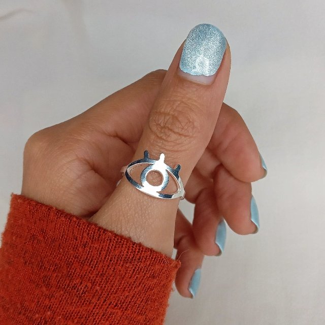 Anillo de acero blanco, calidad premium. Talle: 18 regulable.